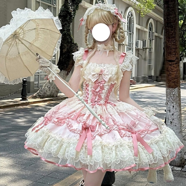 ロリータ フリル レースアップ ジャンスカ ワンピース 6color