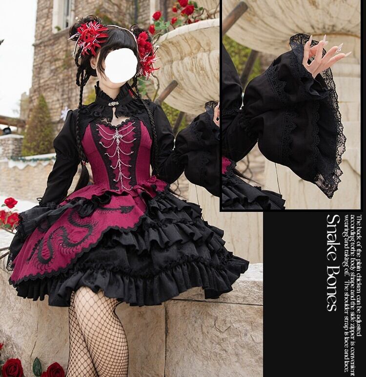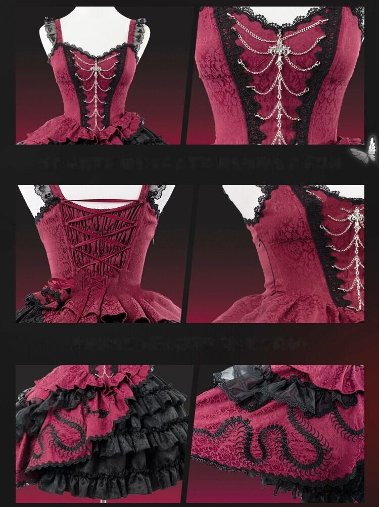 ゴスロリ ジャンスカ ミニ丈 フリル チェーン レースアップ
