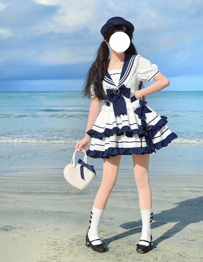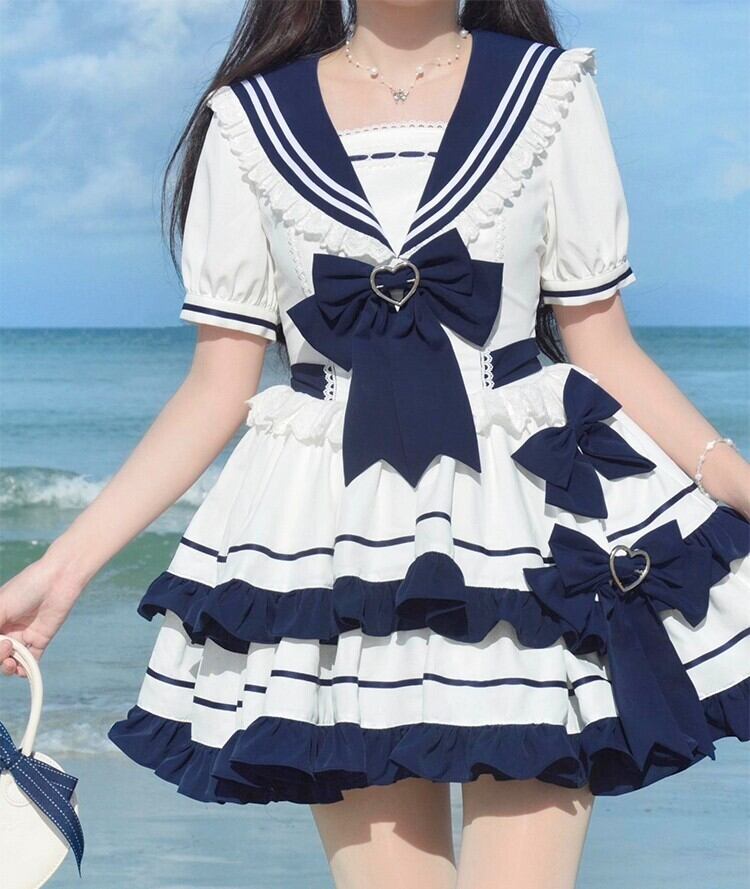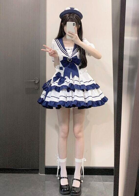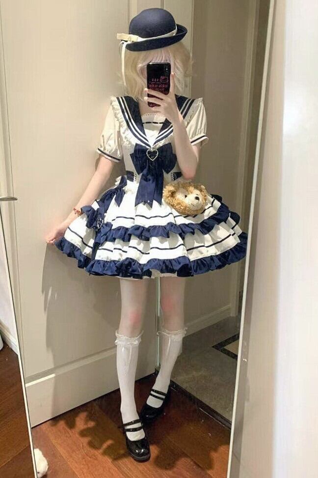 ロリータ セーラー ミニワンピース フリル 半袖