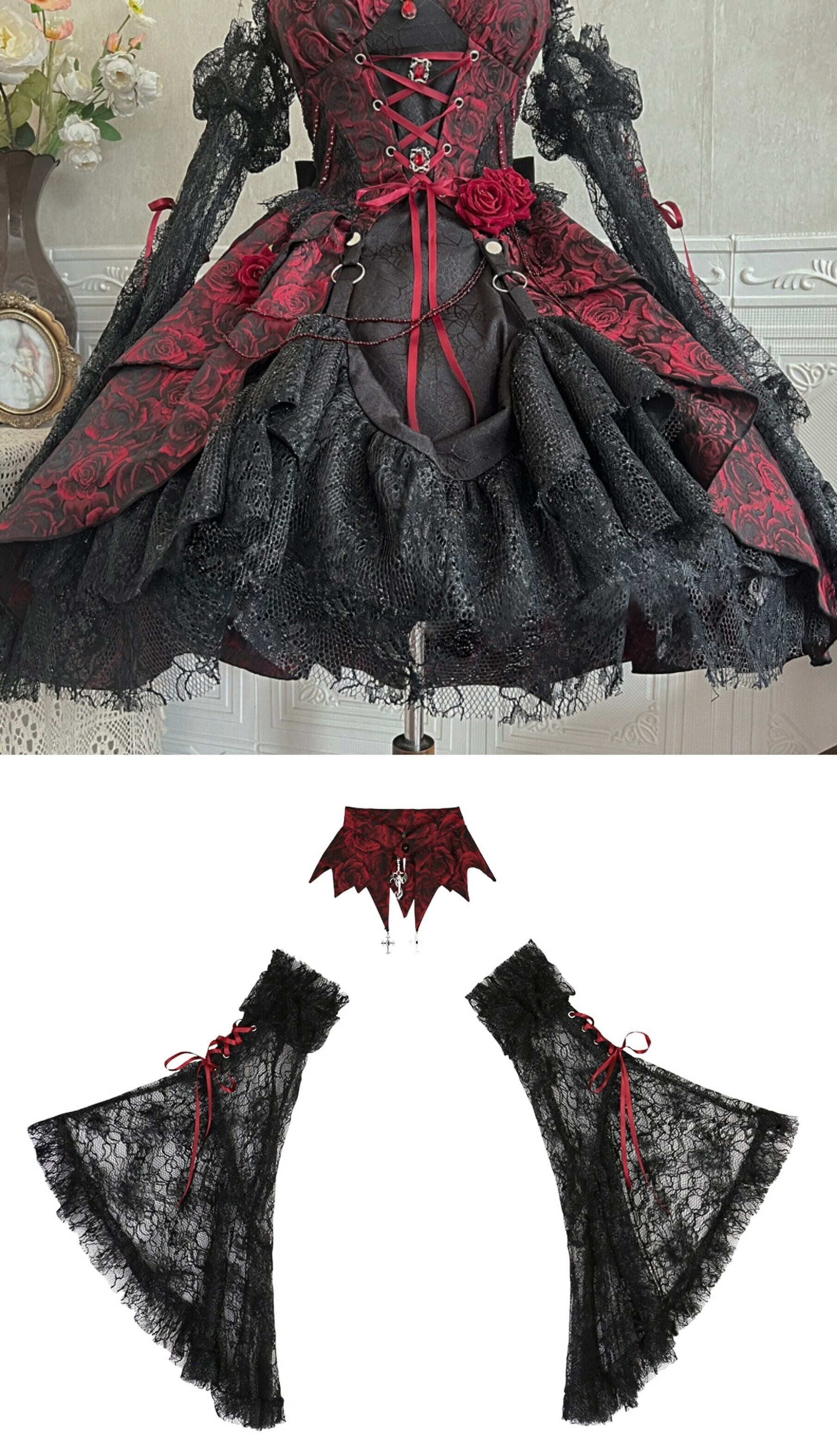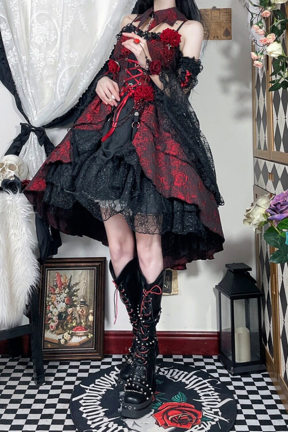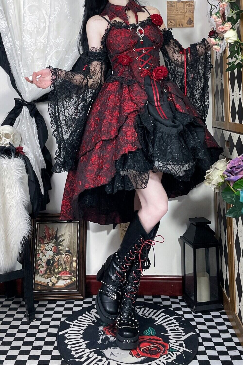 ゴスロリ 花柄 バラ キャミワンピース 姫袖