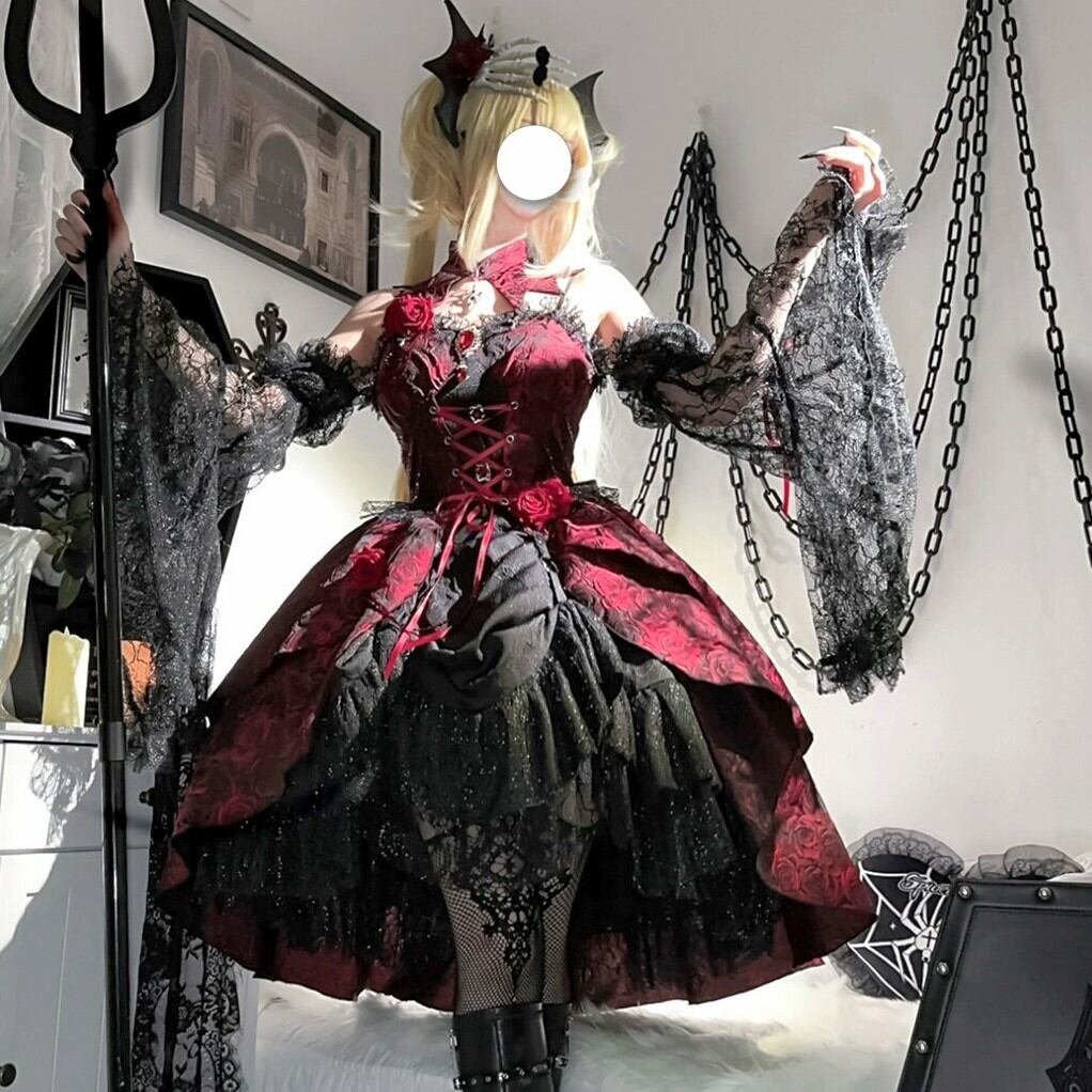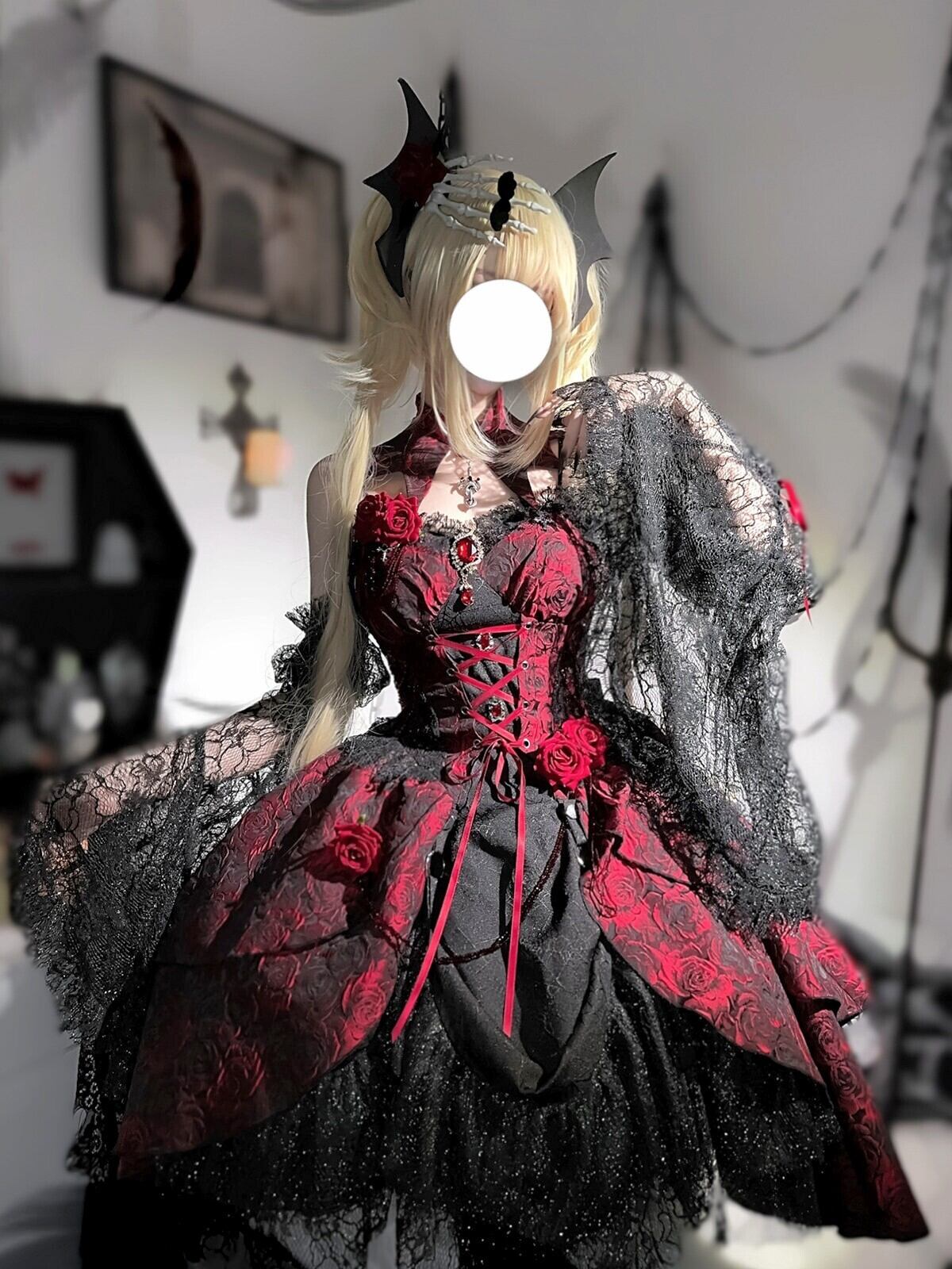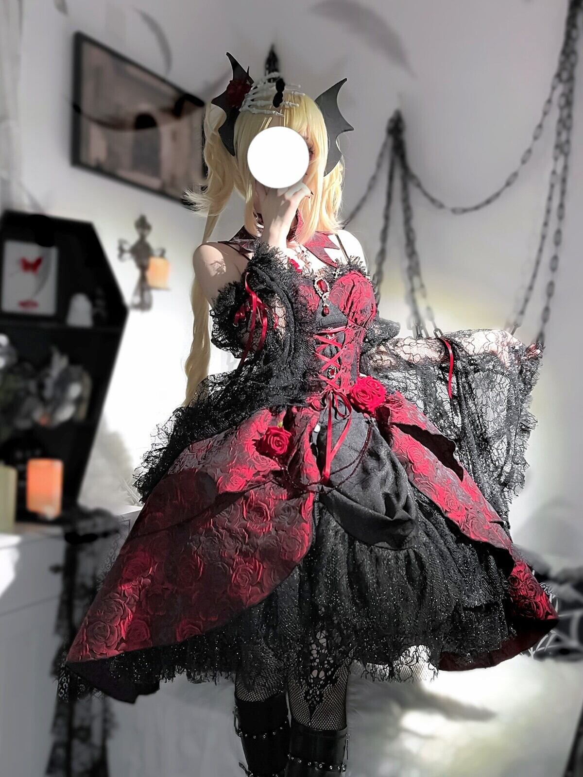 ゴスロリ 花柄 バラ キャミワンピース 姫袖