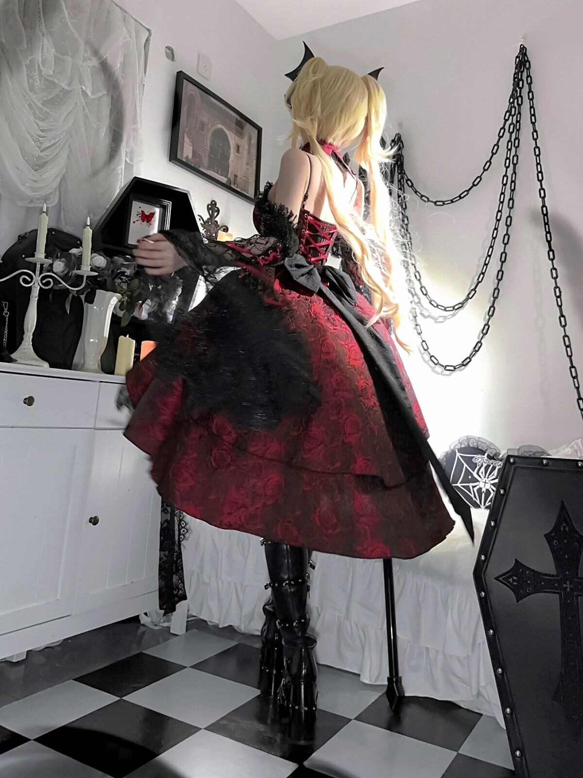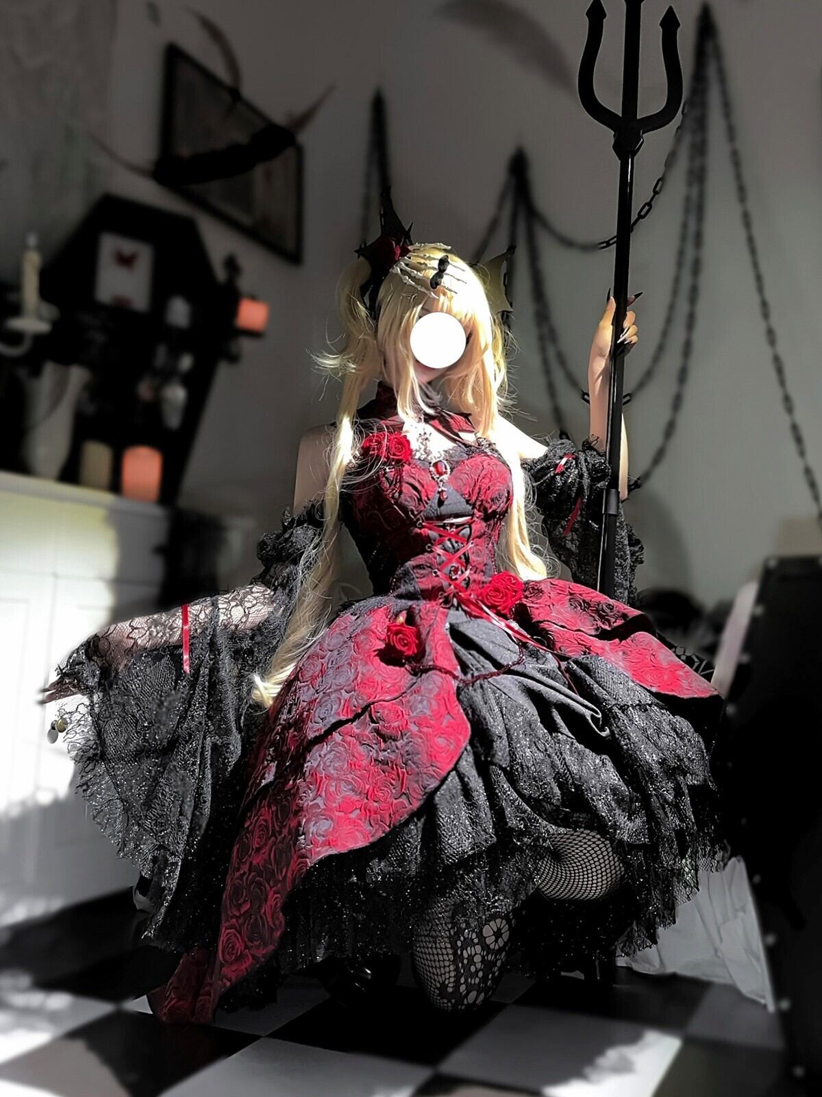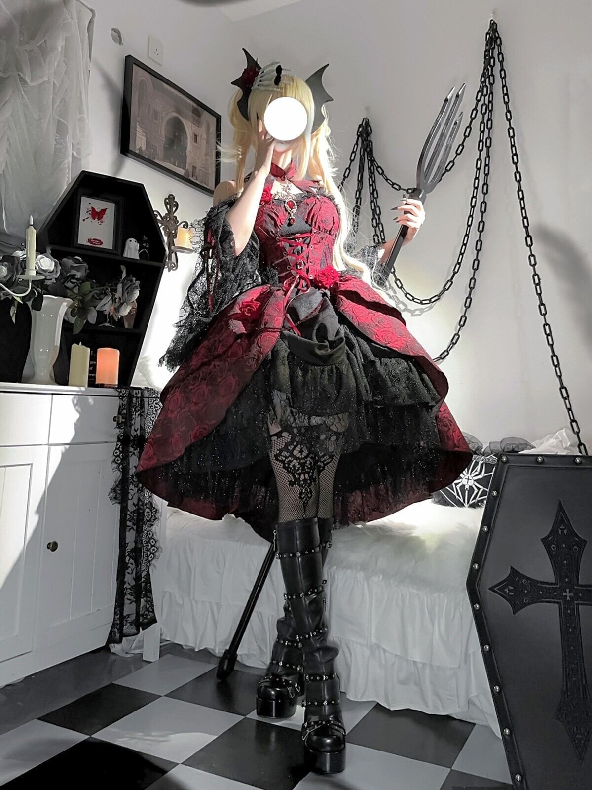 バラが全体的にあしらわれたゴスロリのキャミワンピース♪