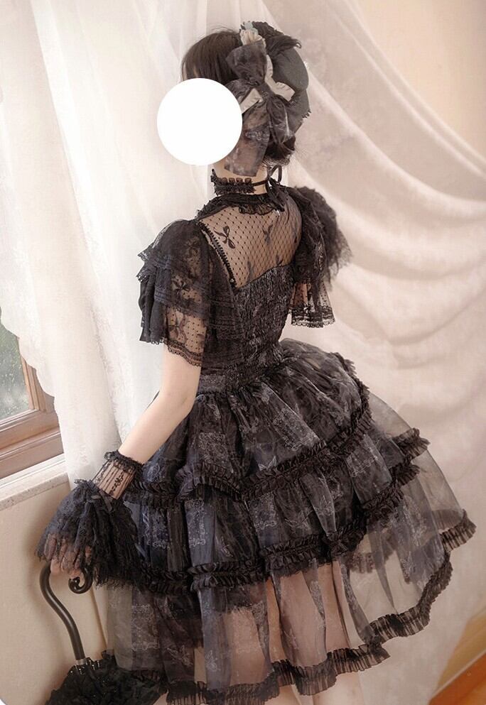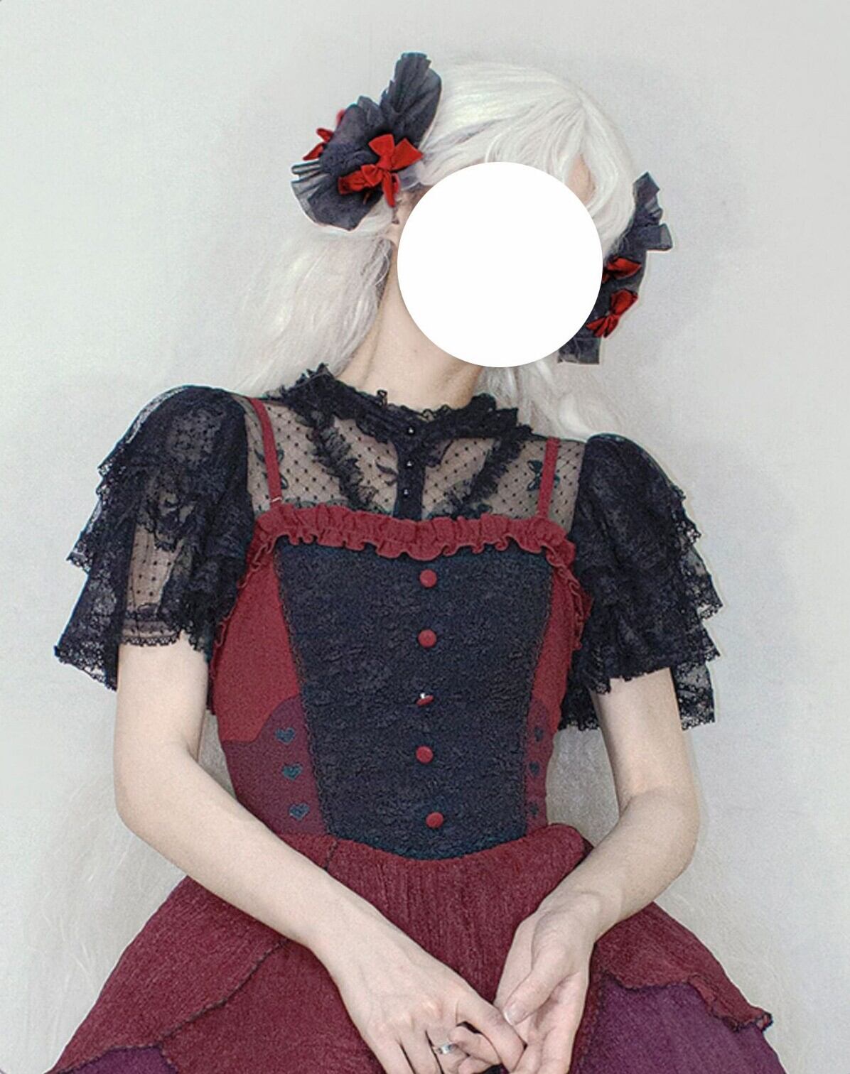 ロリータ ショート丈 ブラウス レース ハイネック 半袖 3color