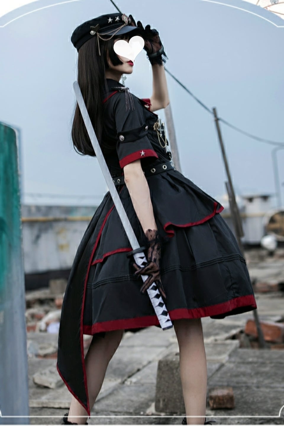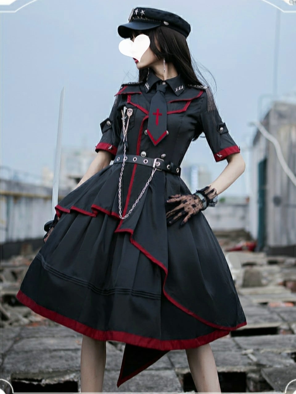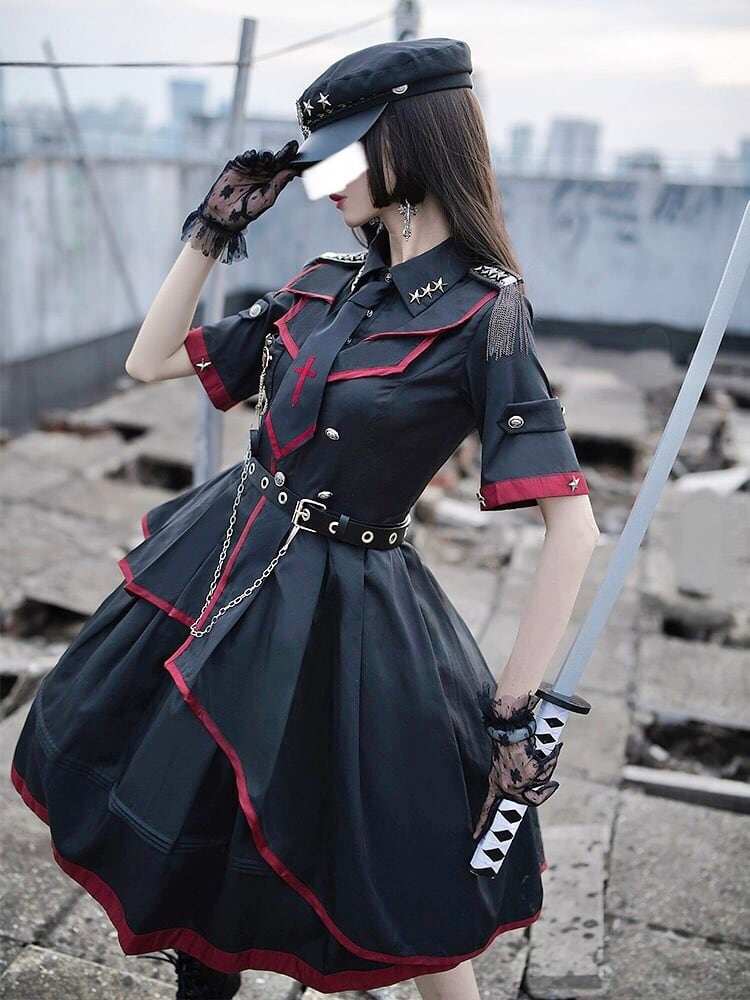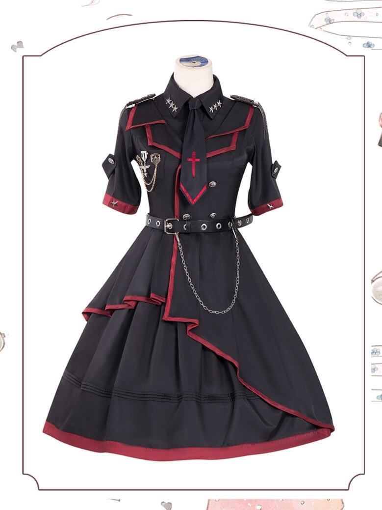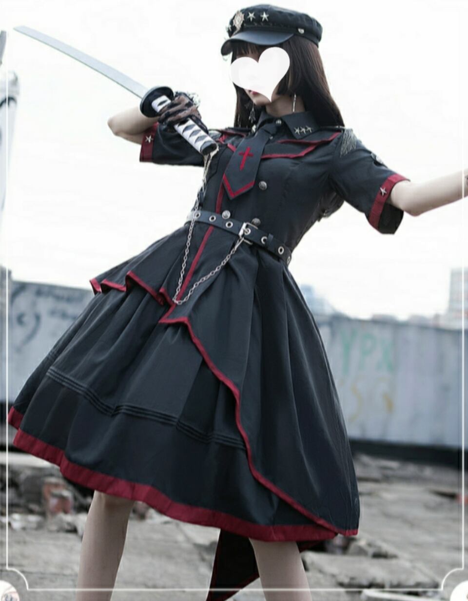 ミリタリーロリータ 軍服 ワンピース アシンメトリー 半袖