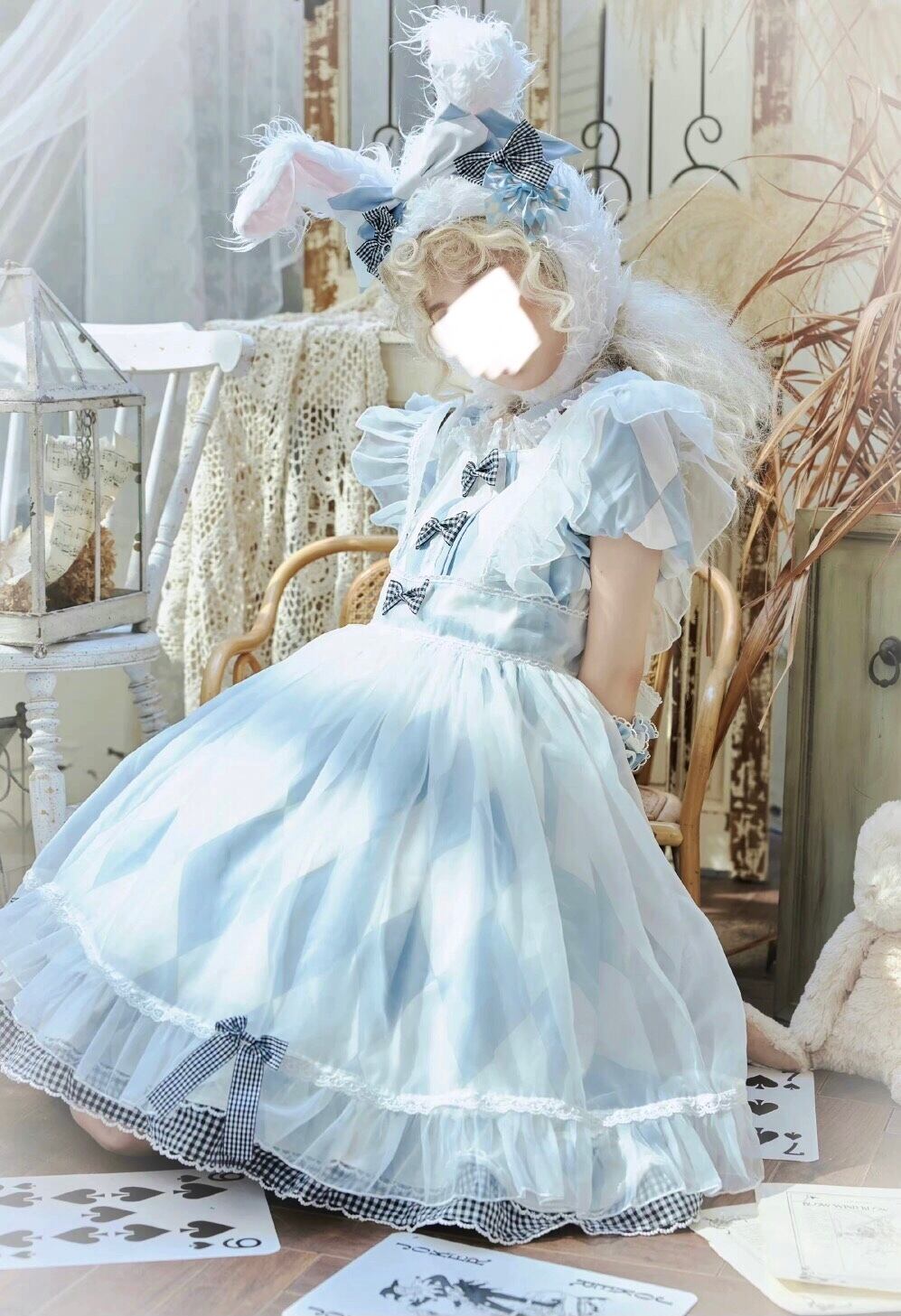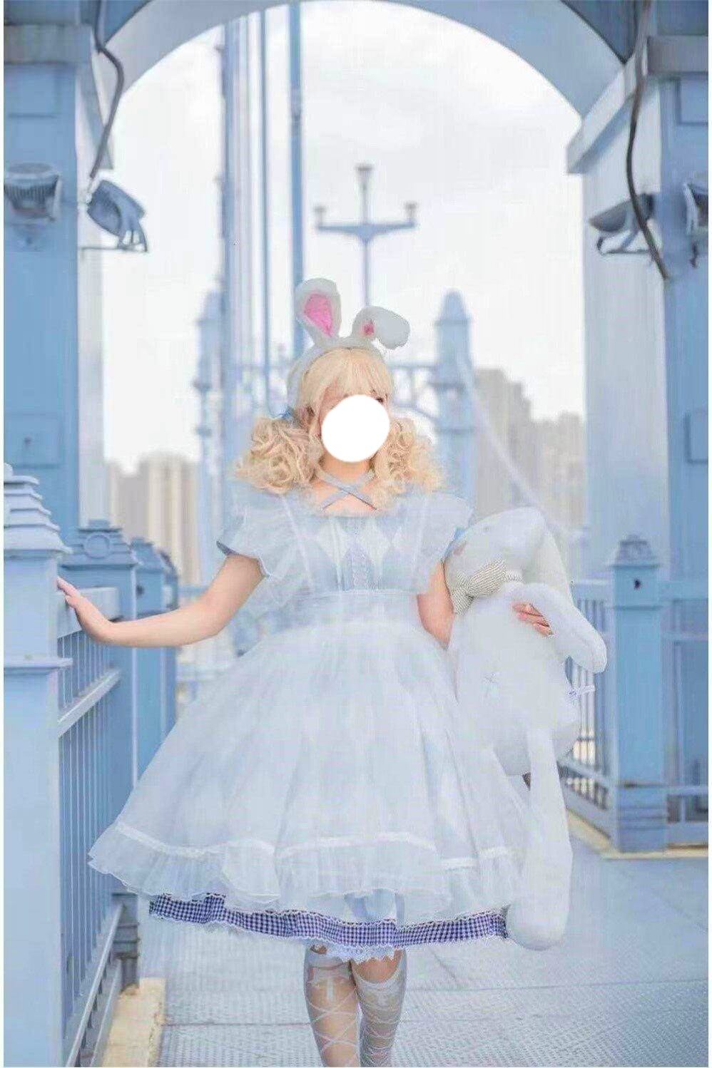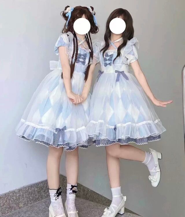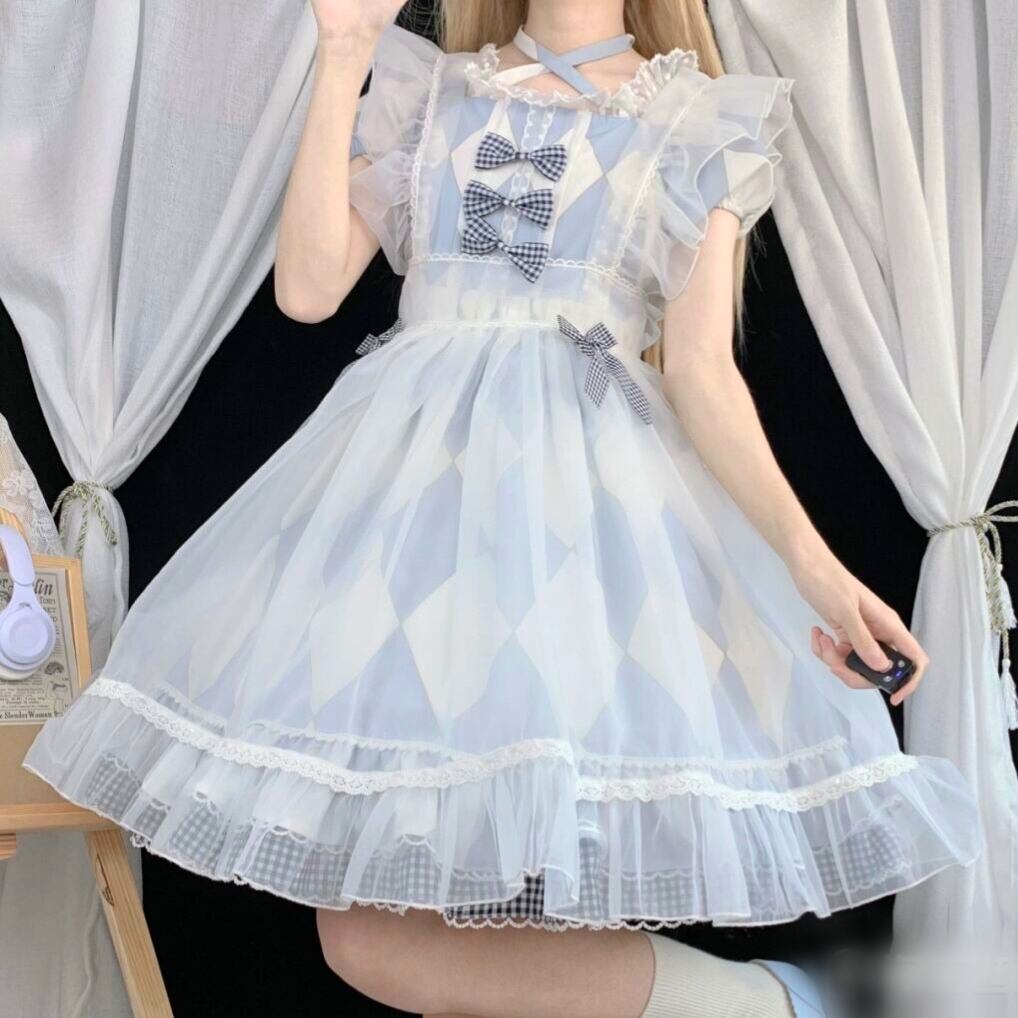 ロリータ チェック柄 アリス 2way ワンピース エプロン セット