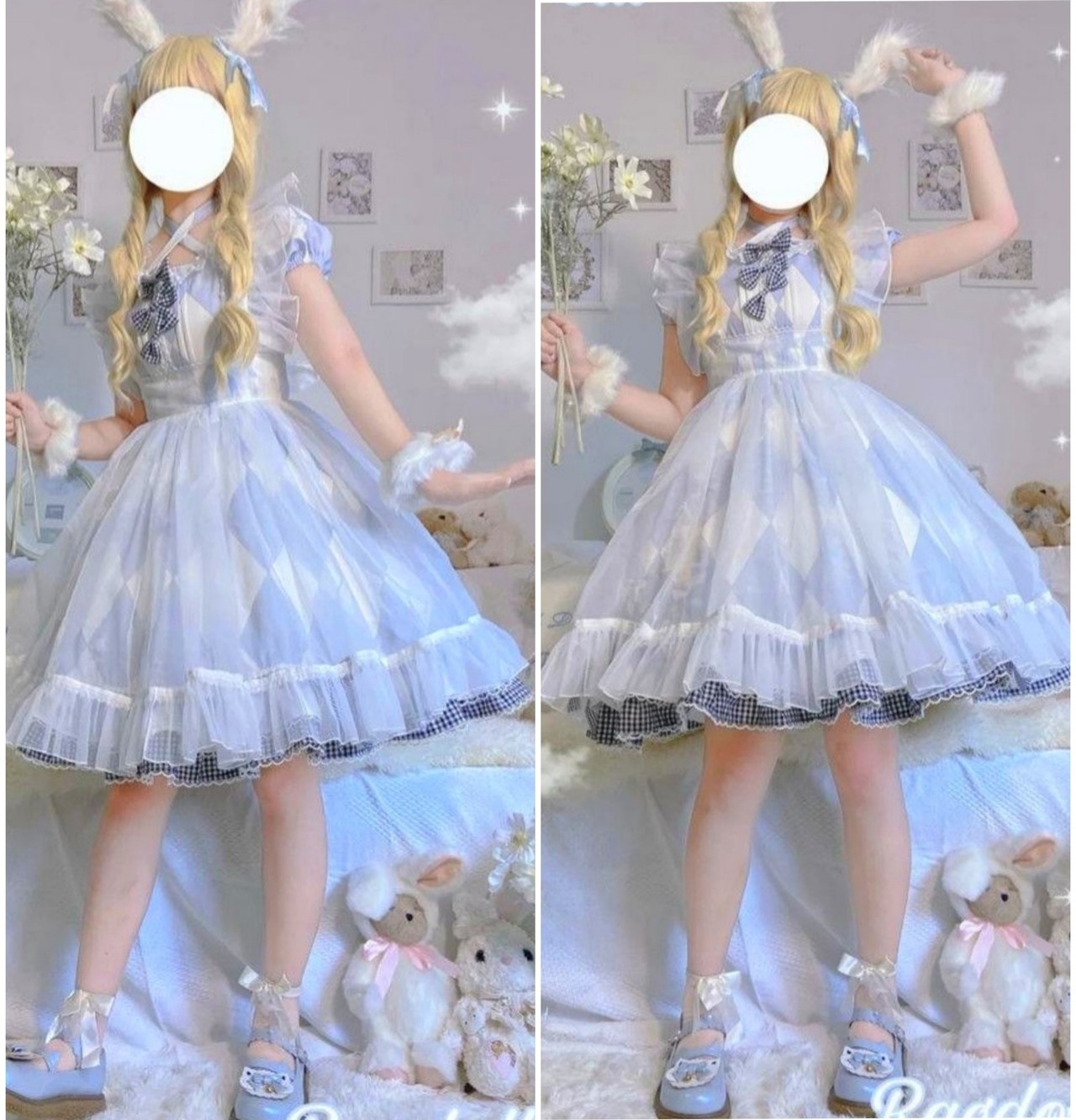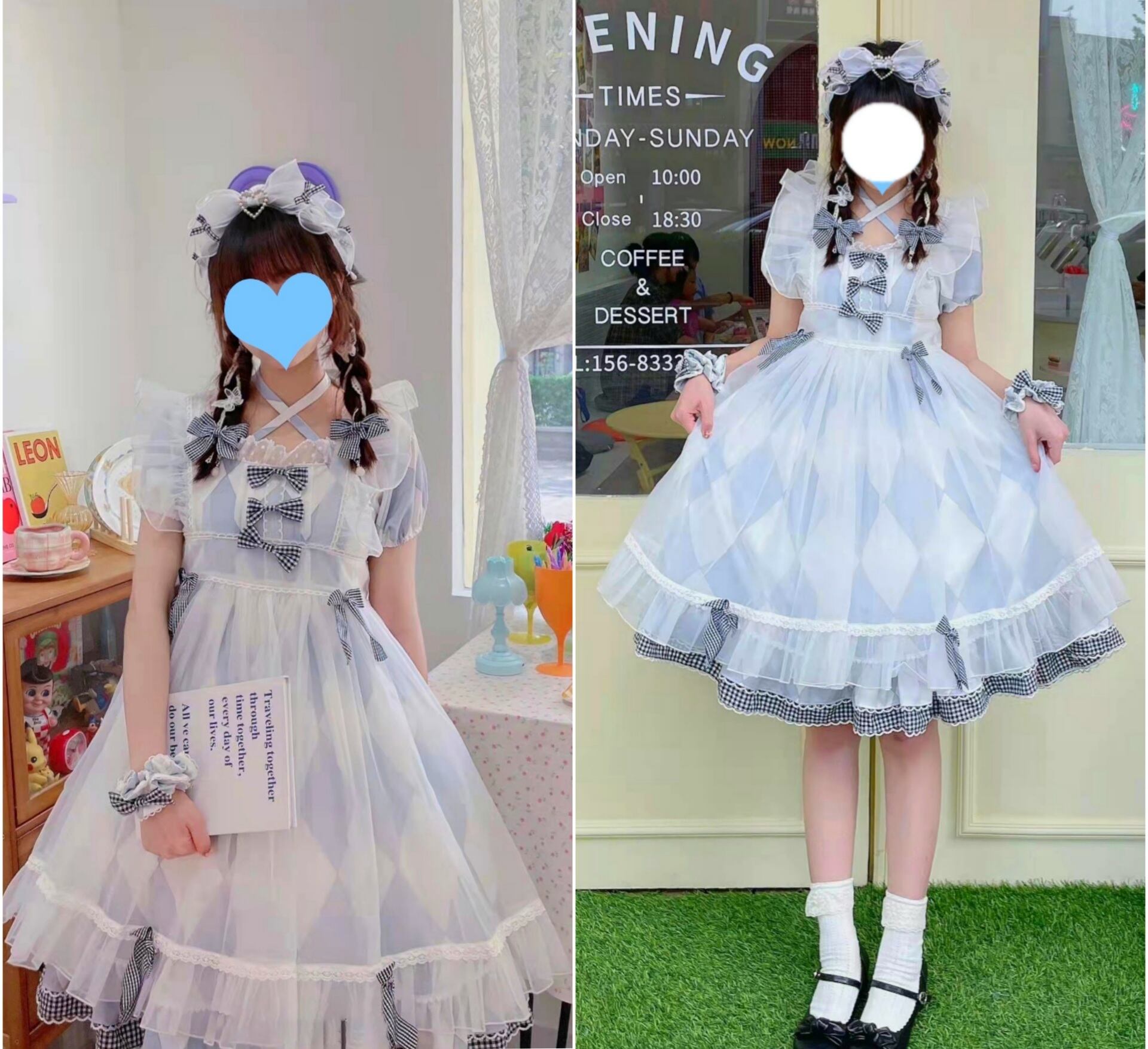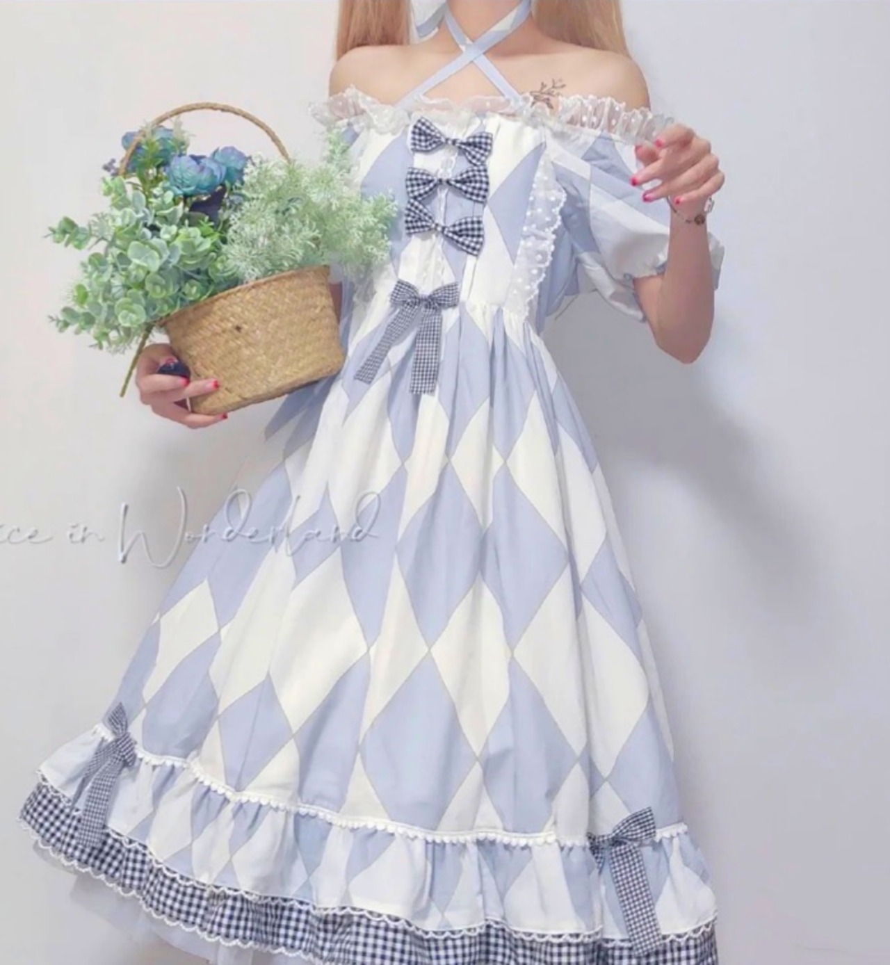 ロリータ チェック柄 アリス 2way ワンピース エプロン セット