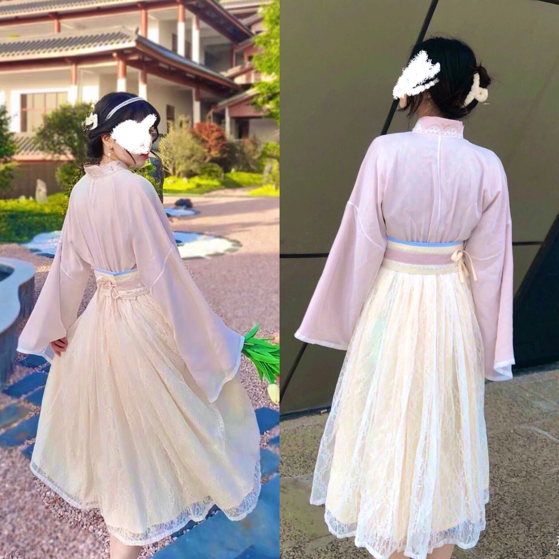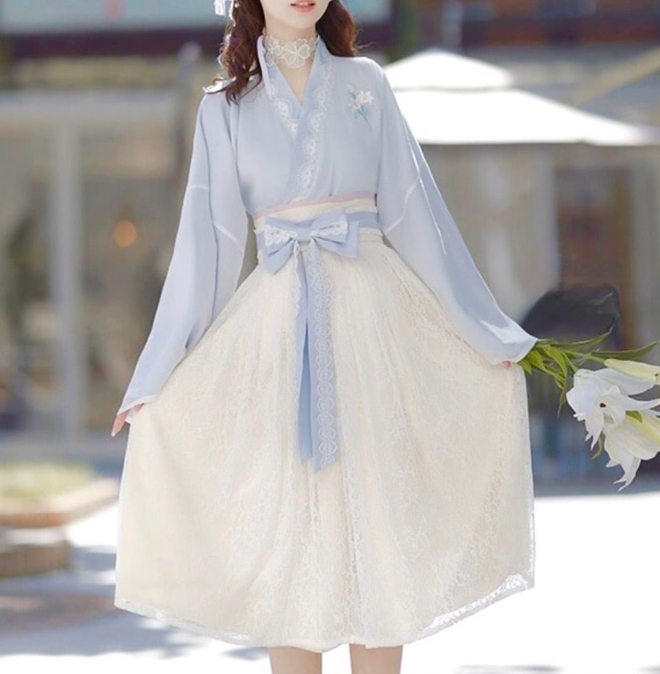 着物スリーブにハイウエストの総レースのスカートがオシャレ☆