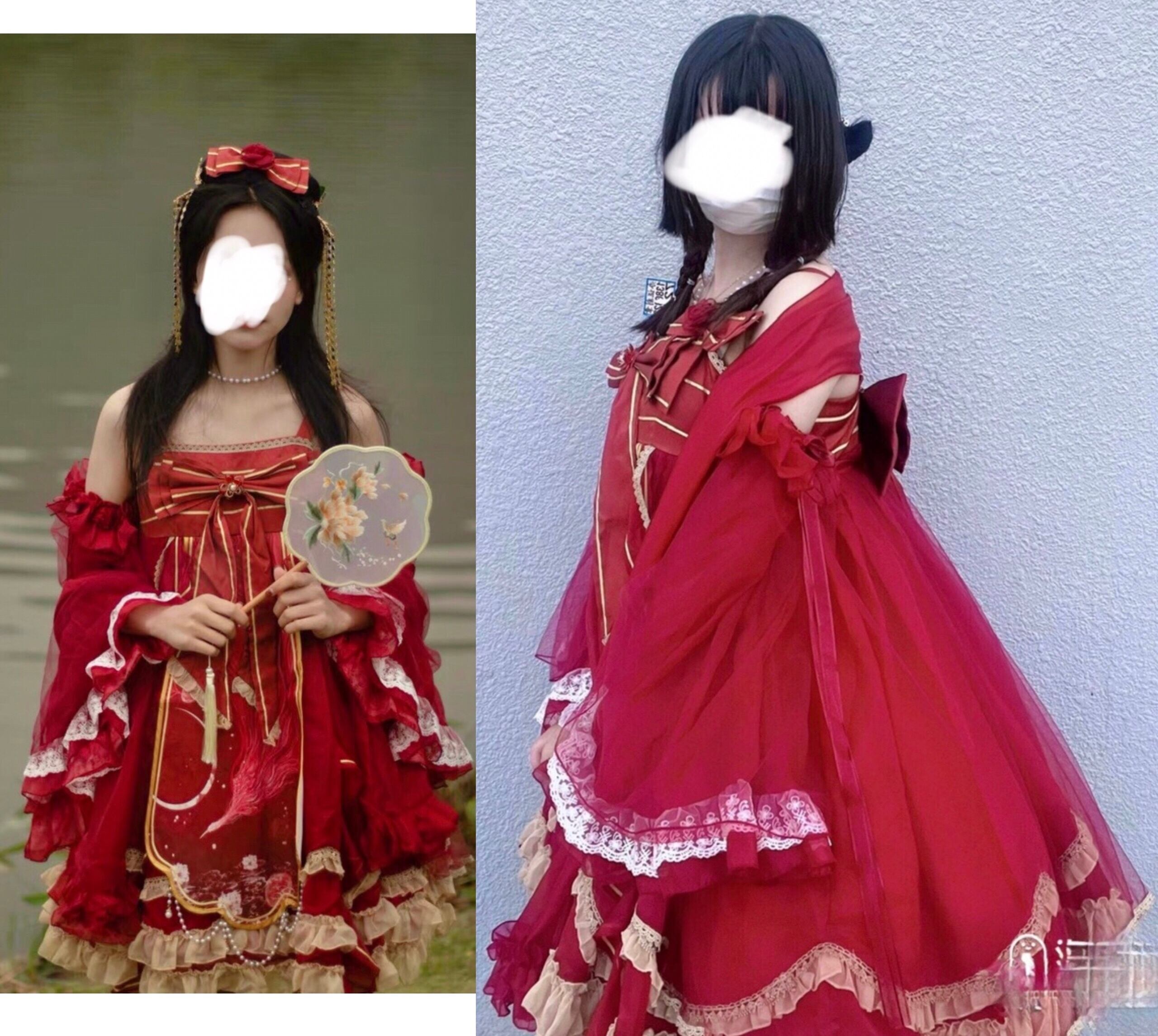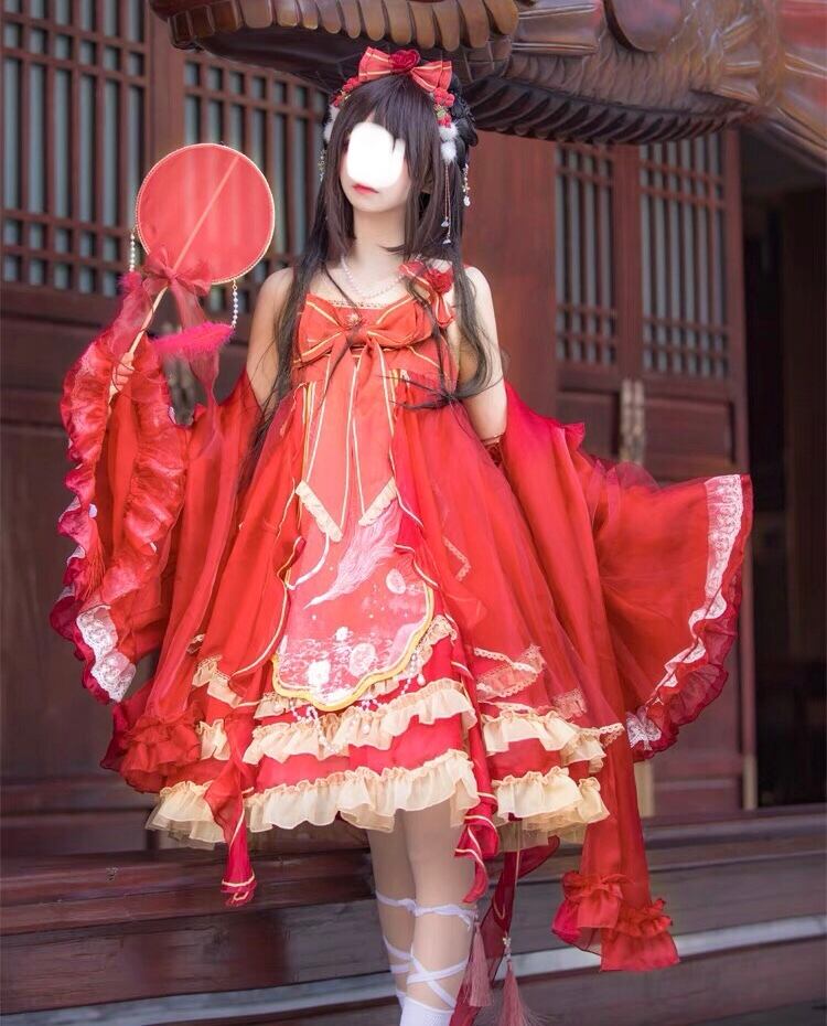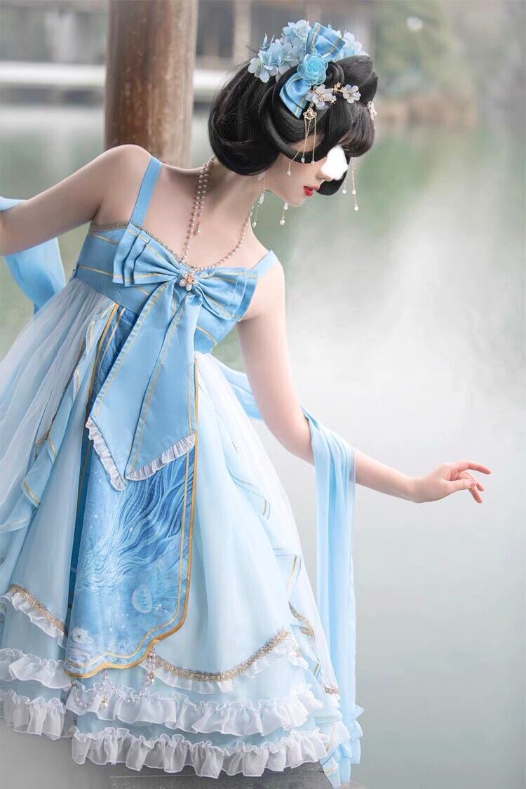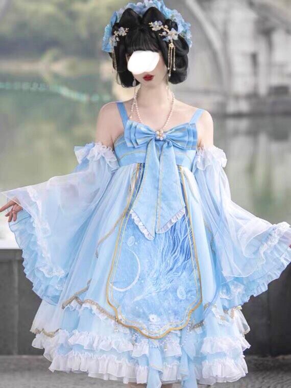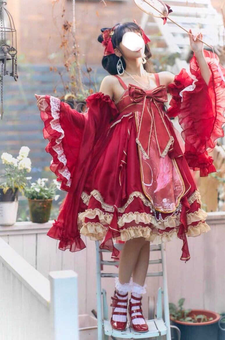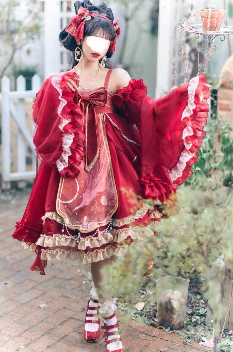 中華ロリータ 漢服 ジャンスカ ワンピース 姫袖+ショール付き 2color