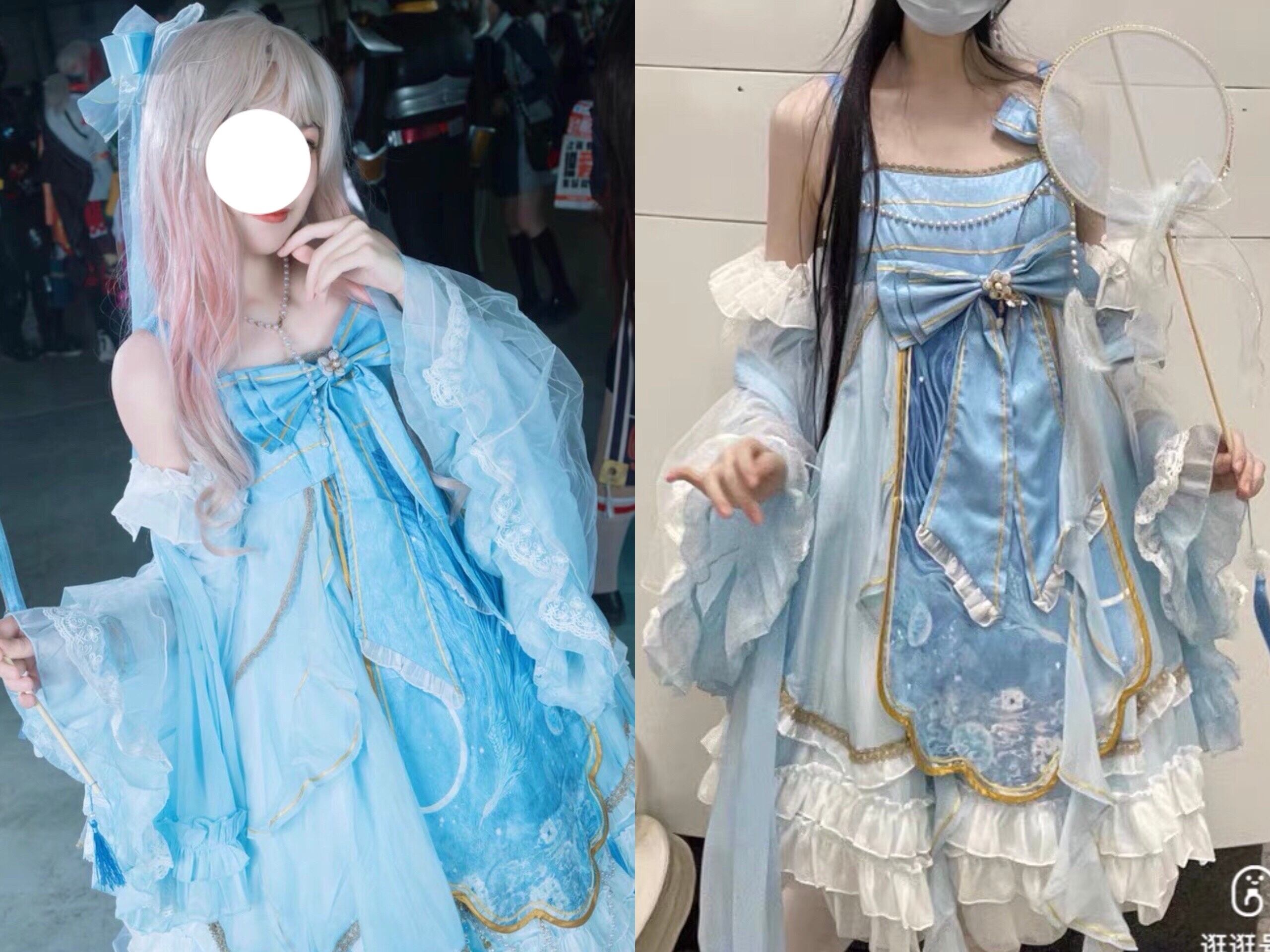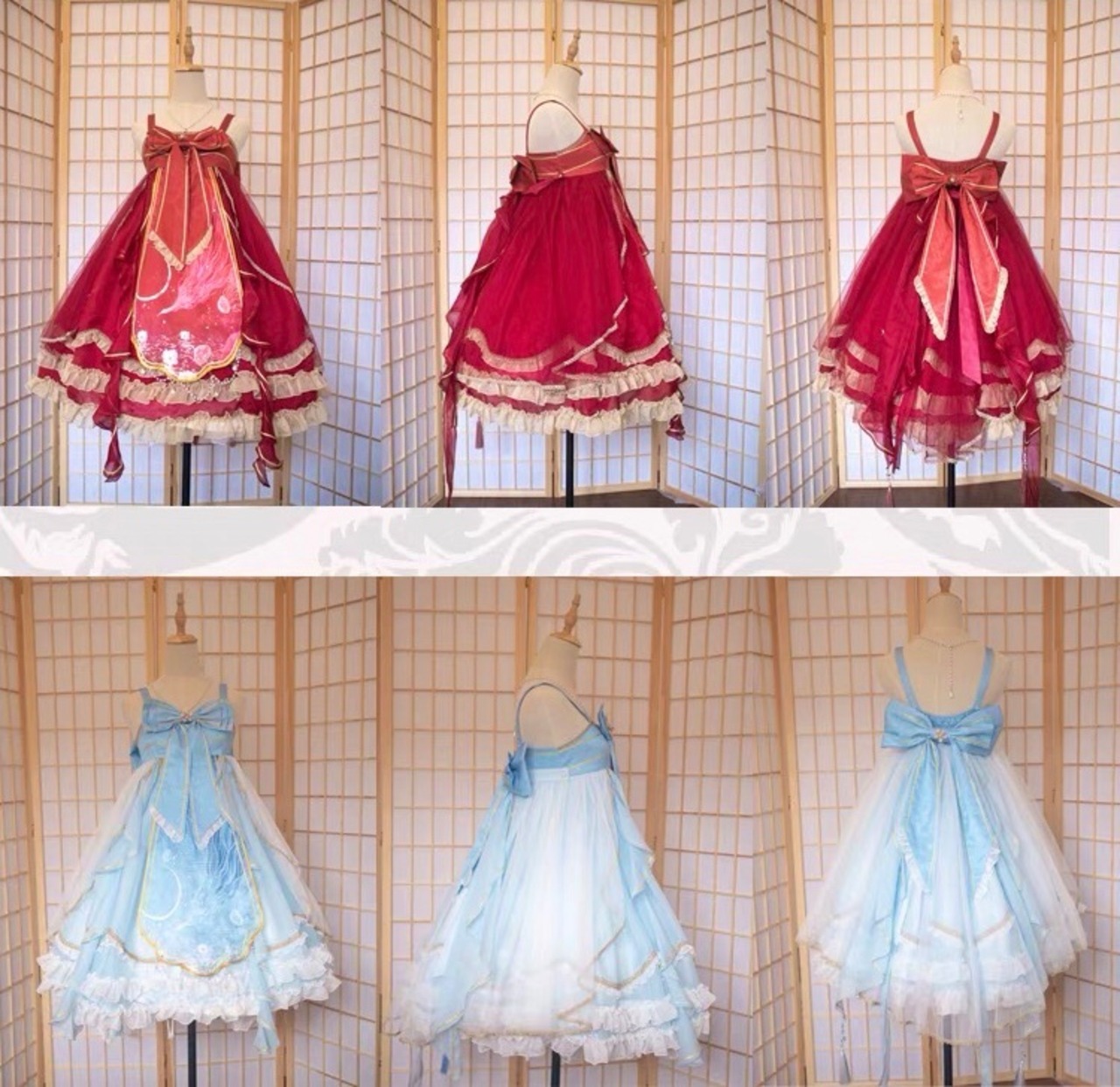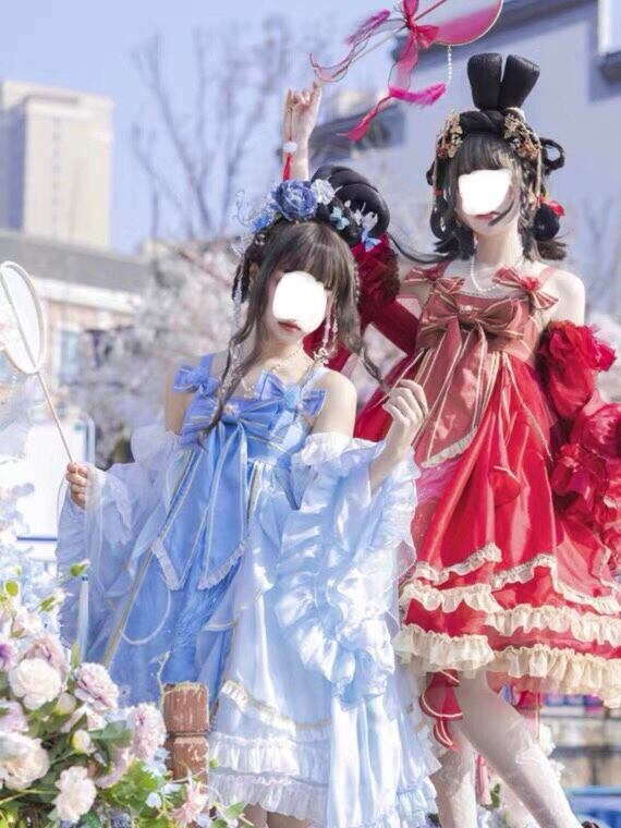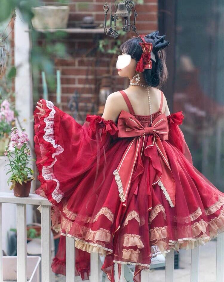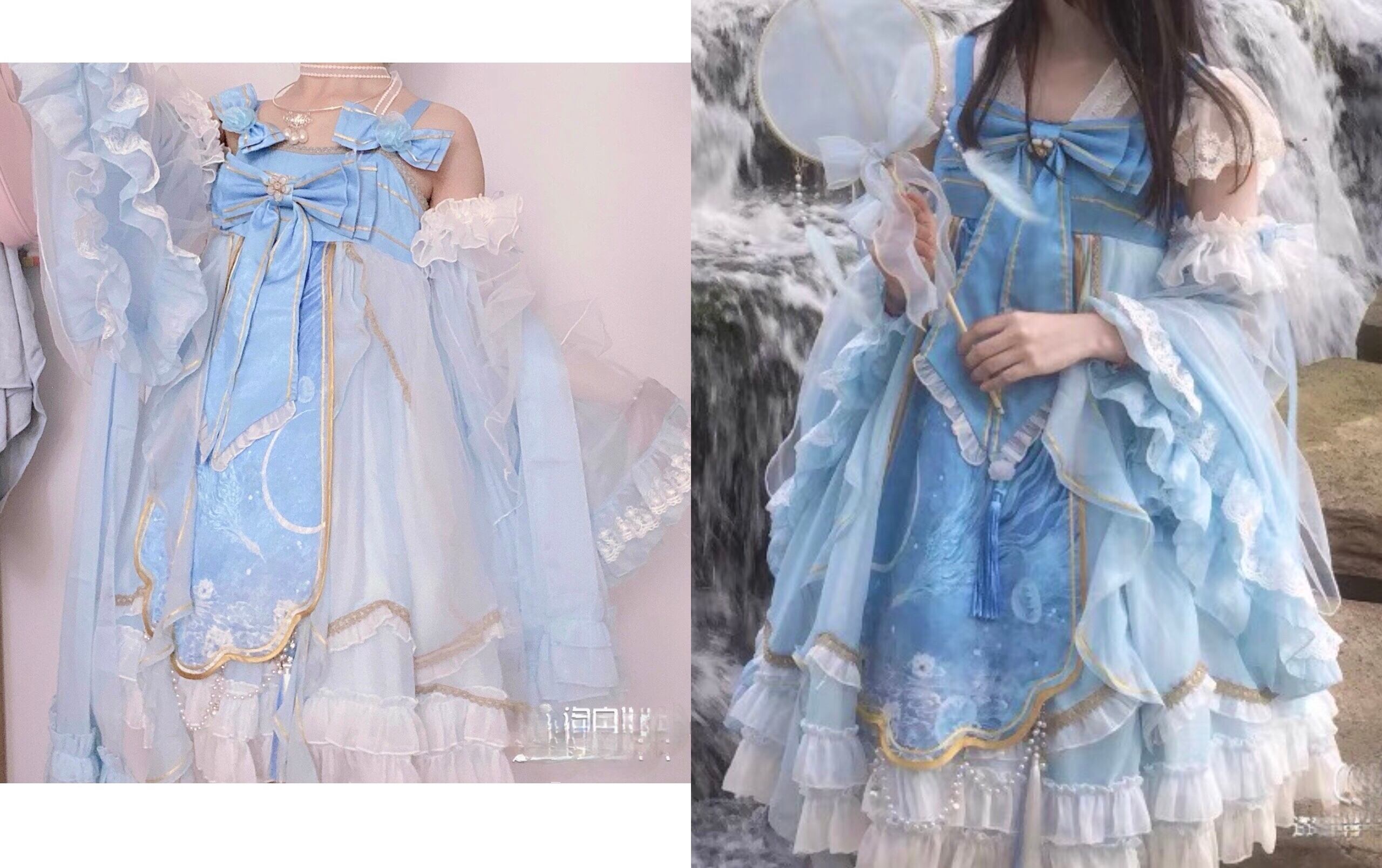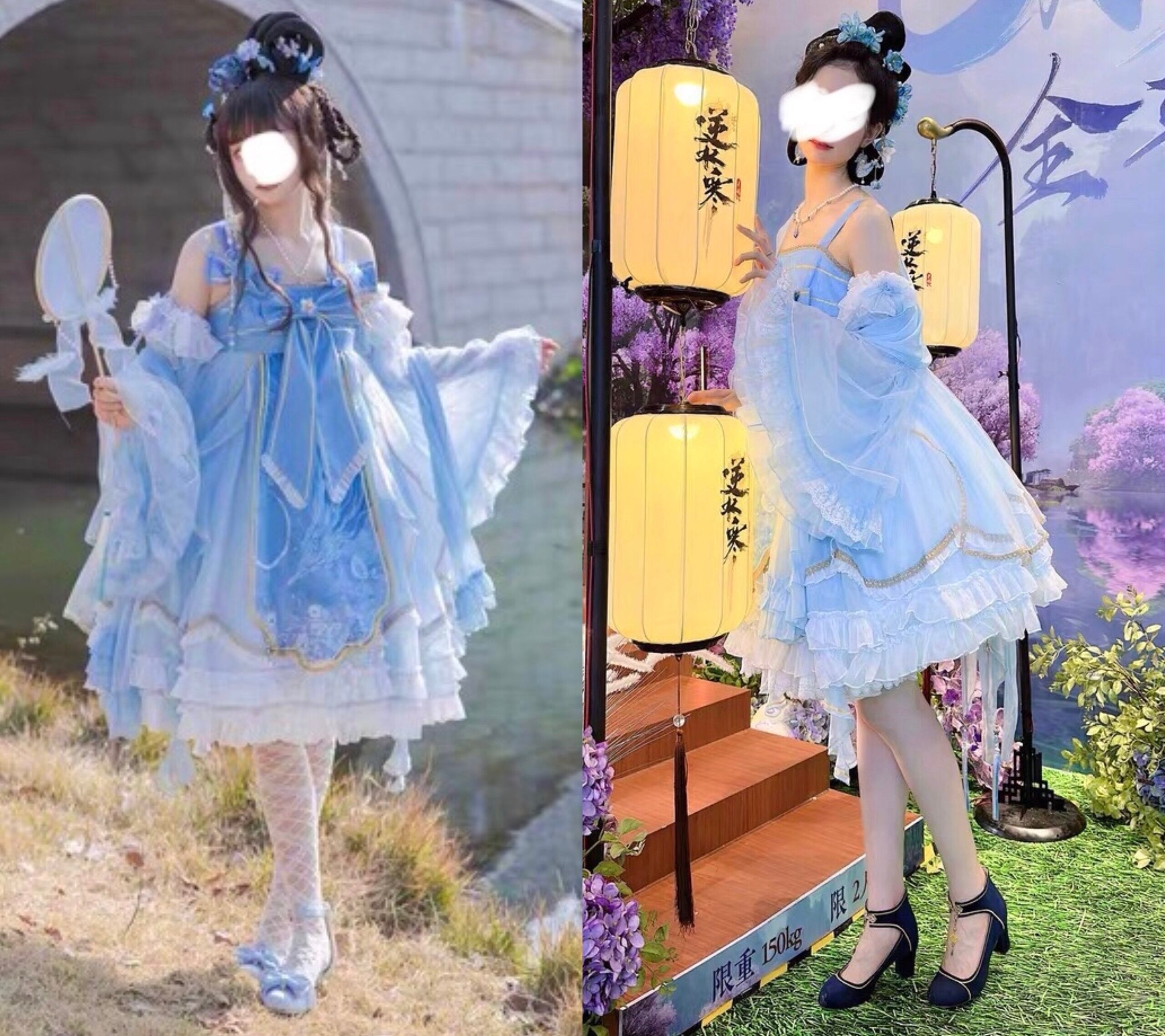 中華ロリータ 漢服 ジャンスカ ワンピース 姫袖+ショール付き 2color