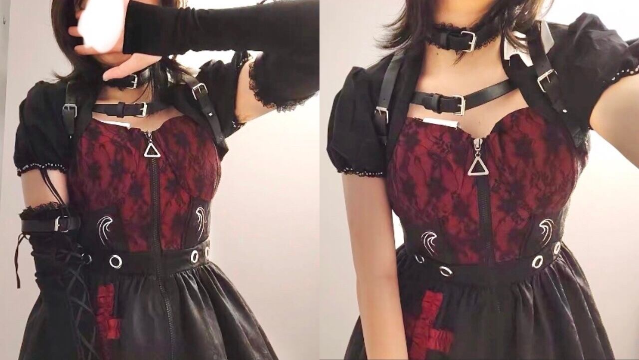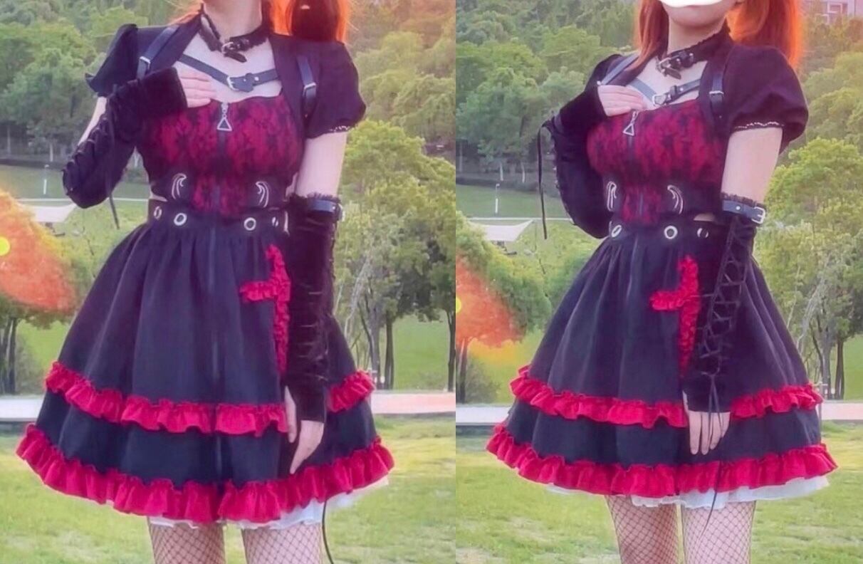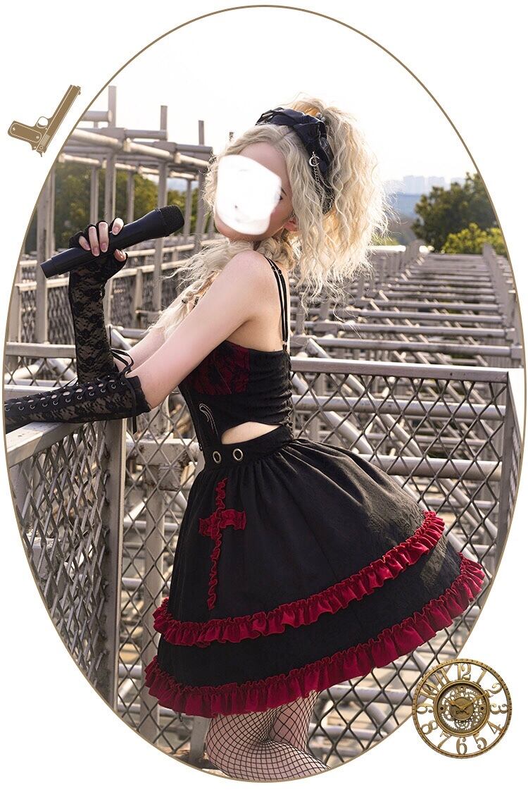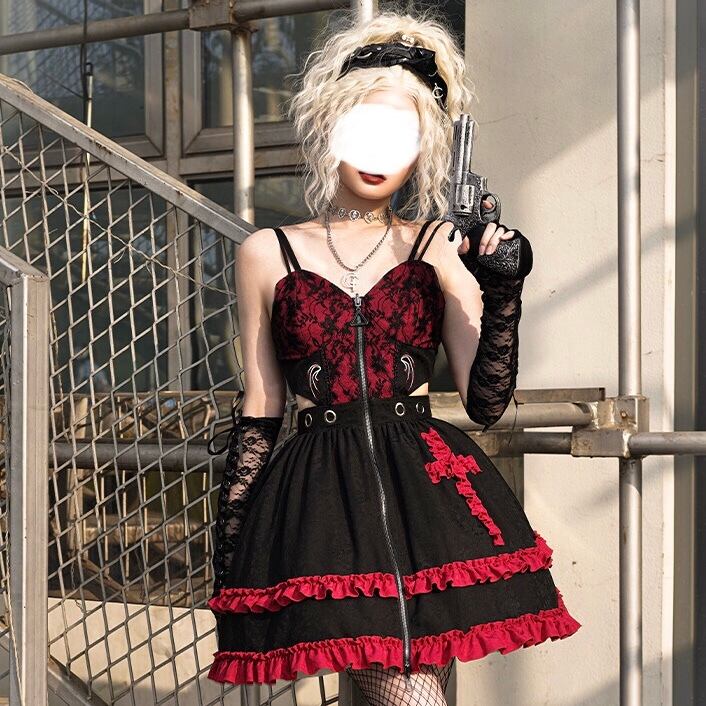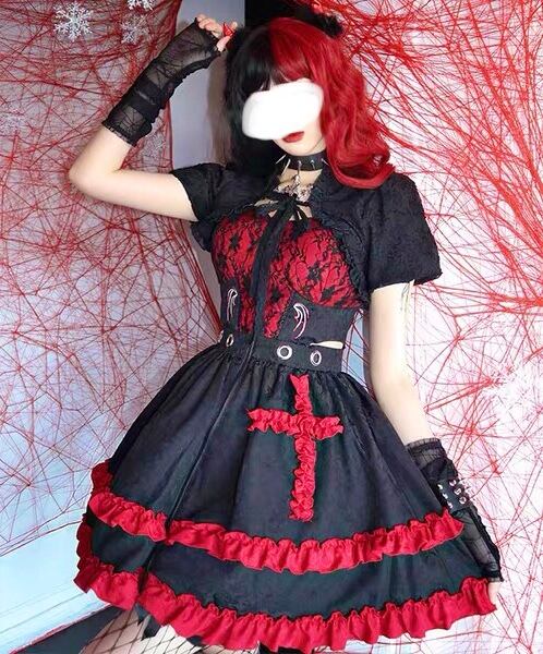 ゴスロリ キャミワンピース レース ブラック×レッド ミニワンピース