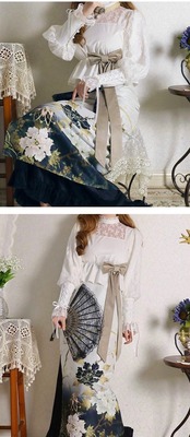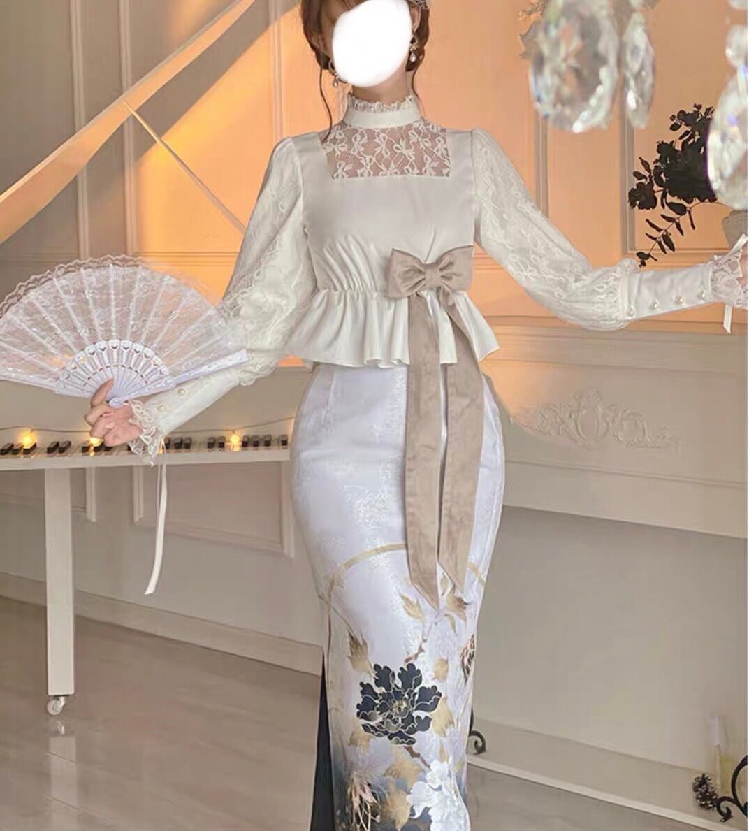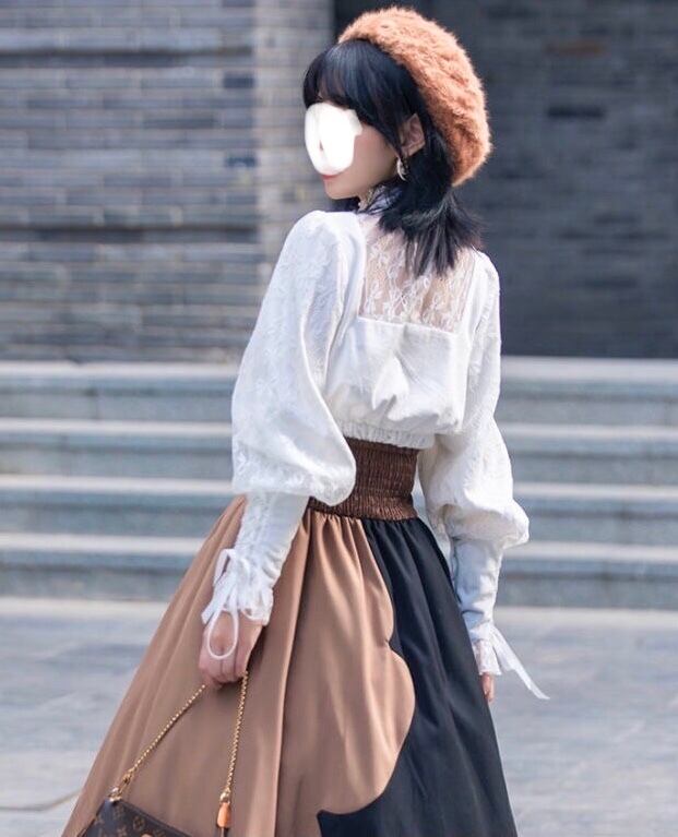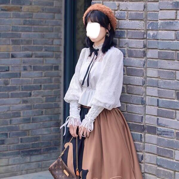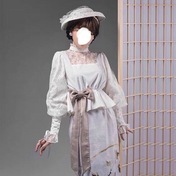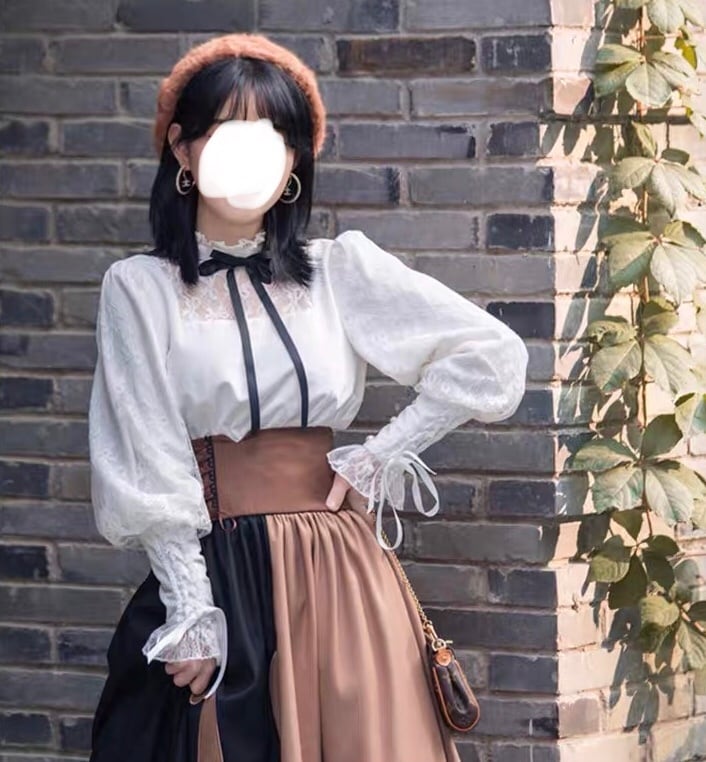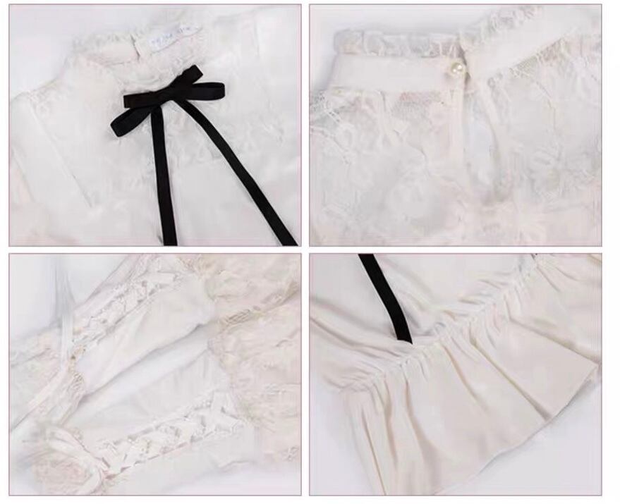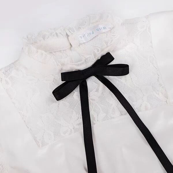 ロリータ ブラウス クラシック レースアップ ハイネック 長袖