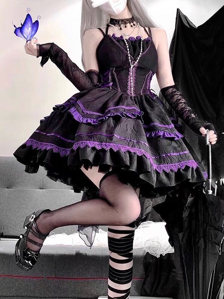ゴスロリ キャミワンピース レース リボン ミニワンピース