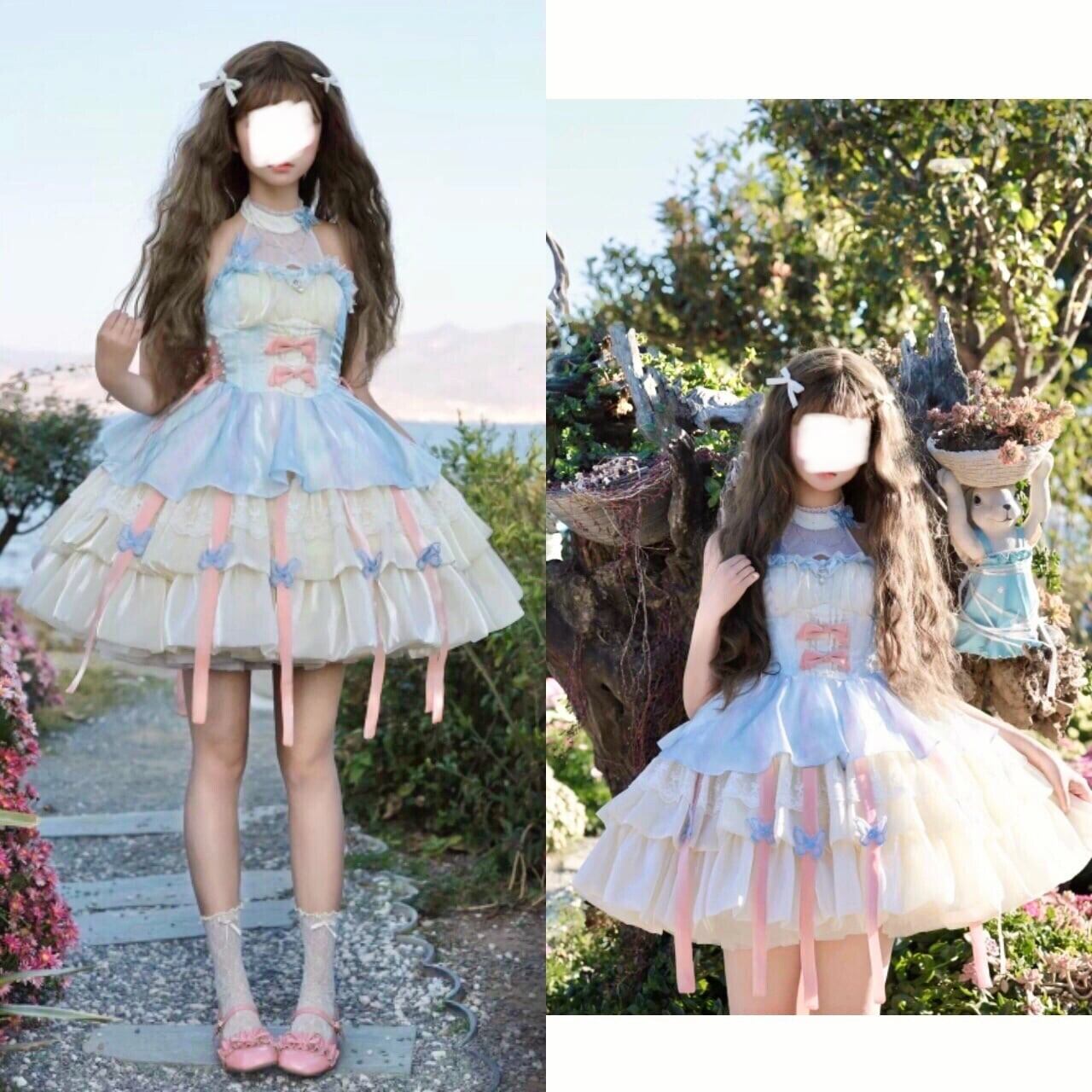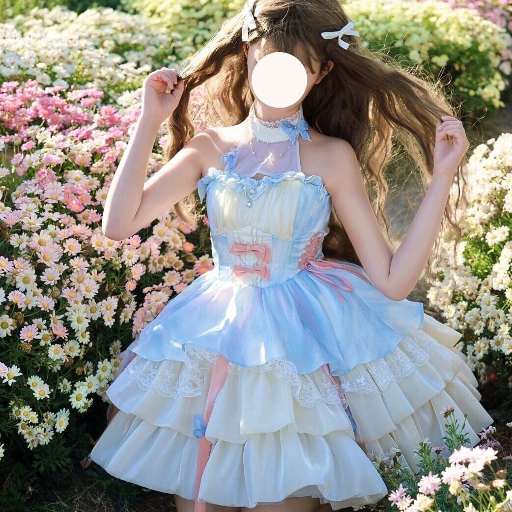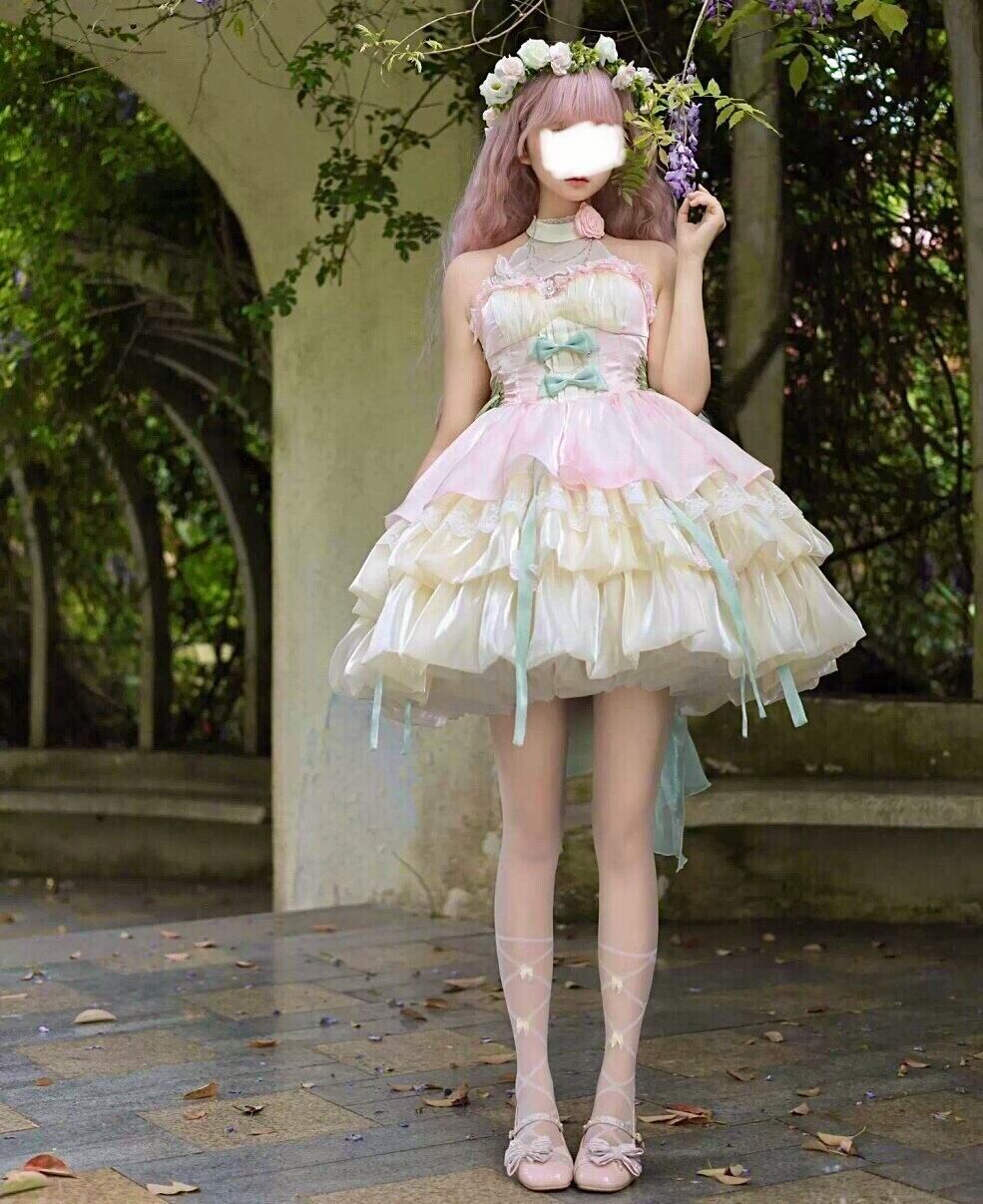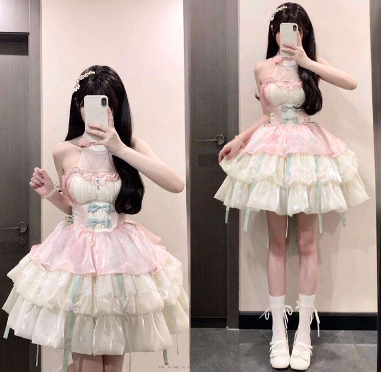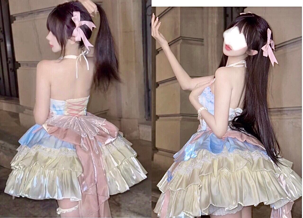 ロリータ ミニワンピース ホルターネック リボン 2color
