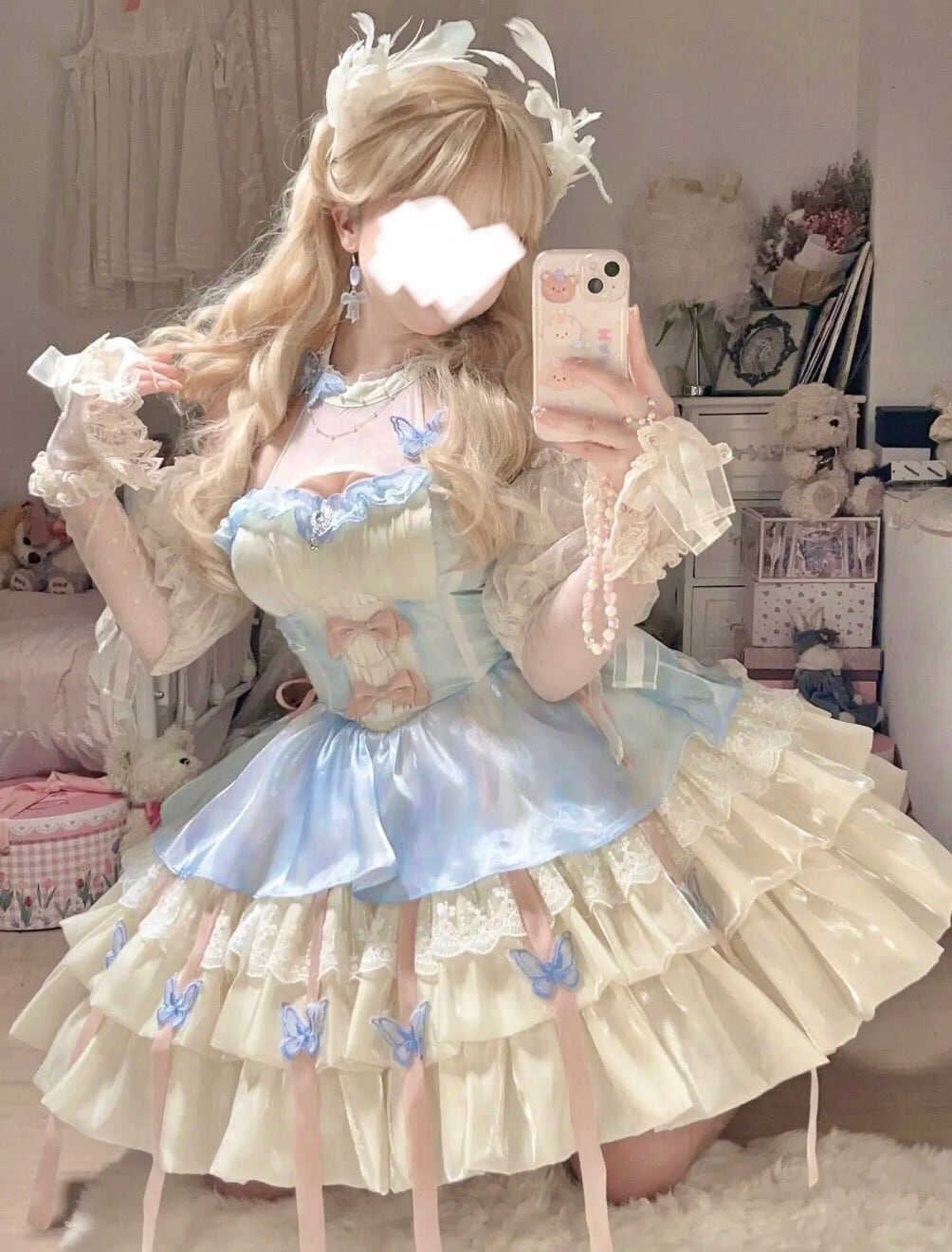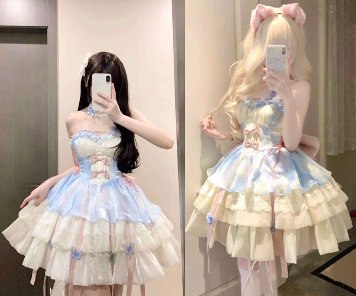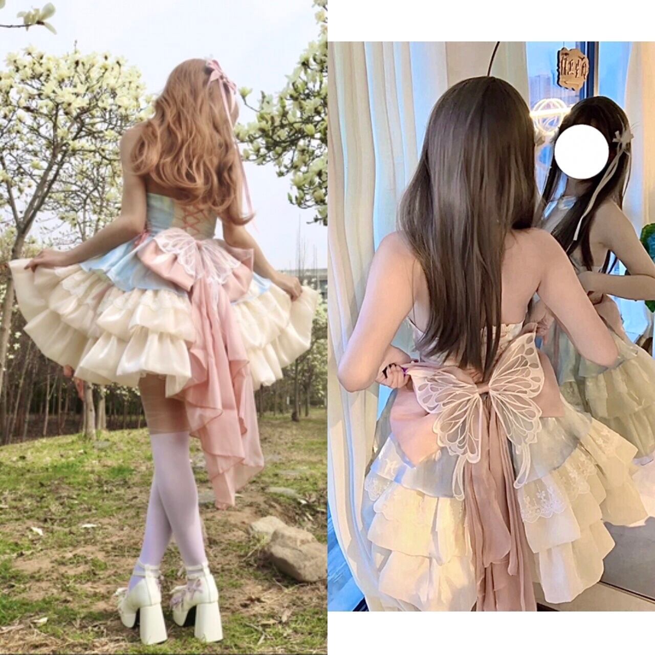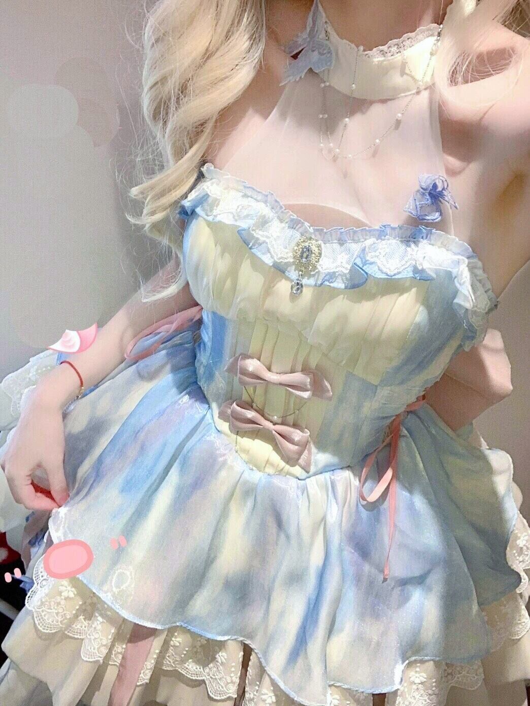 ロリータ ミニワンピース ホルターネック リボン 2color